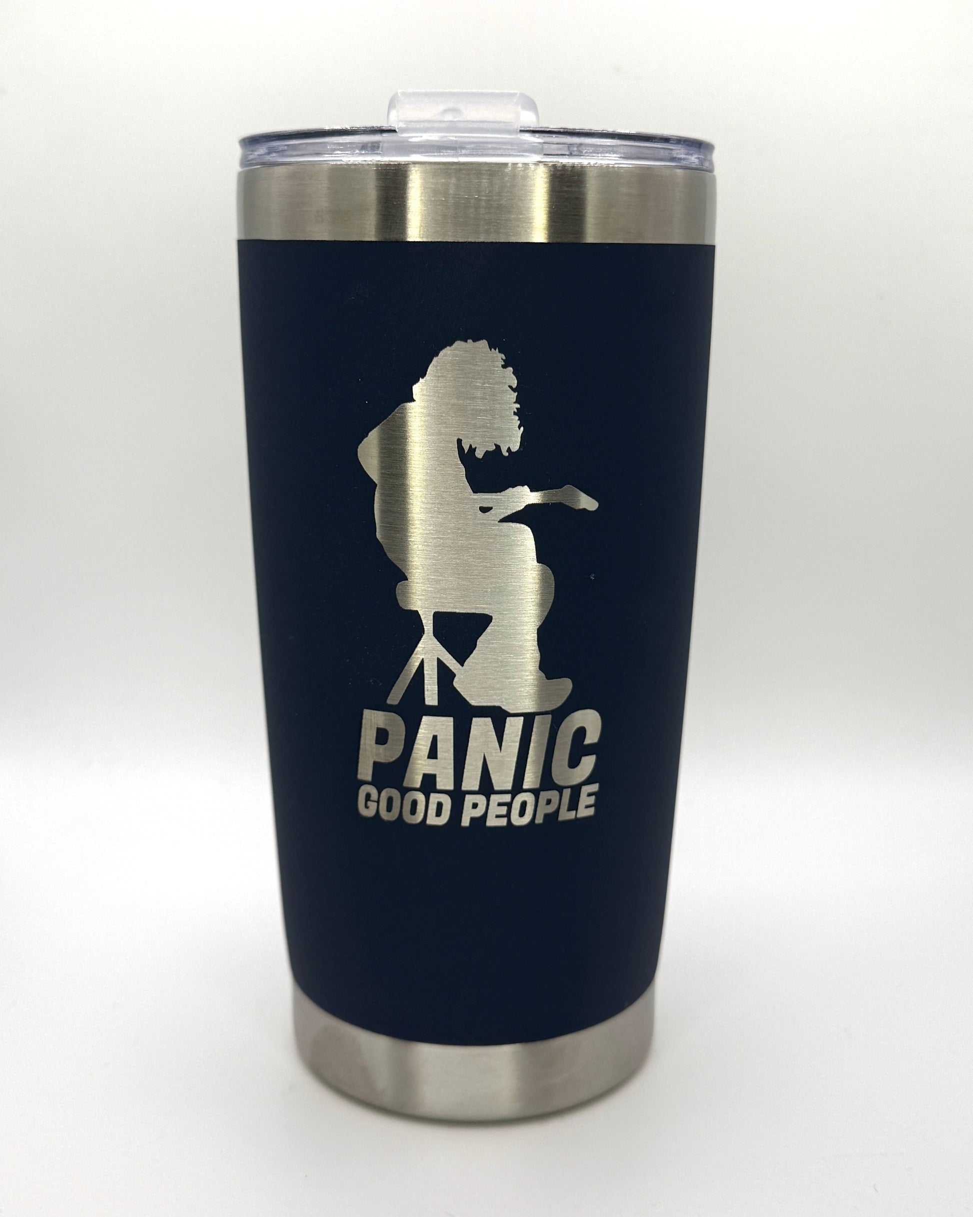 Houser Panic Good People 20oz Steel Tumbler| Laser Engraved | Black Drinkware | Panic Fan Art