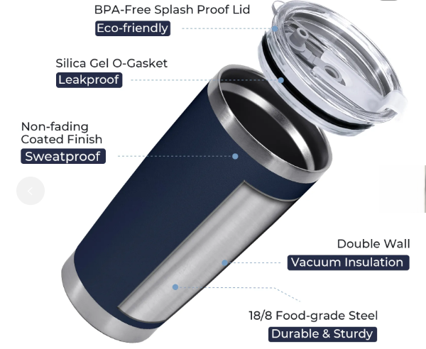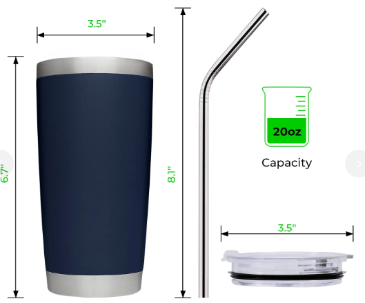 * Hand washing with warm water is recommended to prolong the life of the tumbler coating.